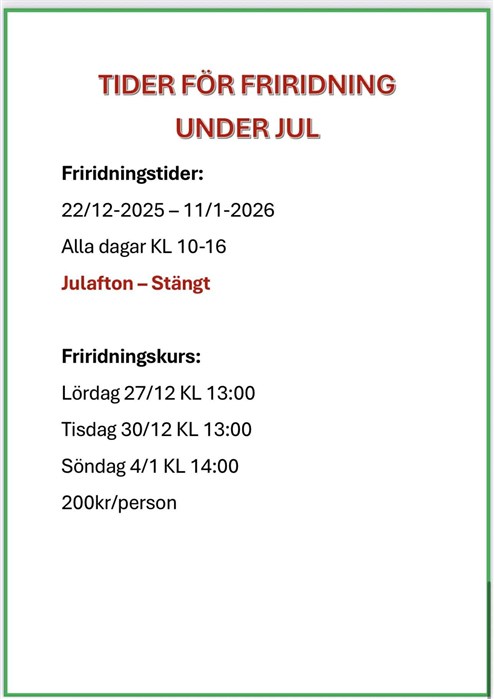 Friridning går inte att boka utan sker i mån av plats och hästar.
