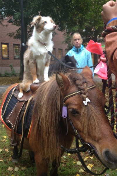Men det var inte bara barn som red, utan hundarna Nellie och Liten fick också prova på att rida.. Vem vet de kanske också ska börja på ridskola? ;)