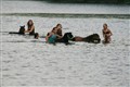 Nessla hämtar och Myra springer bredvid och hejar på!