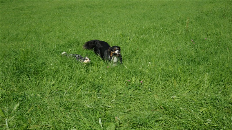 Så här gör pudlarna istället för att springa runt i gräset som galningar! :)